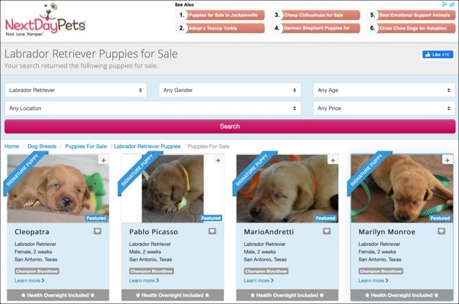 Next Day Pets provides the safest marketplace for finding purebred puppies from reputable dog breeders. Place your free advert now and rehome your dogs quickly with a new family. Get Results from 6 Engines.