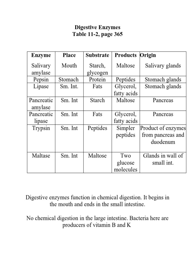 Solved Table 1 Digestive Enzymes And Where They Work In Chegg Com